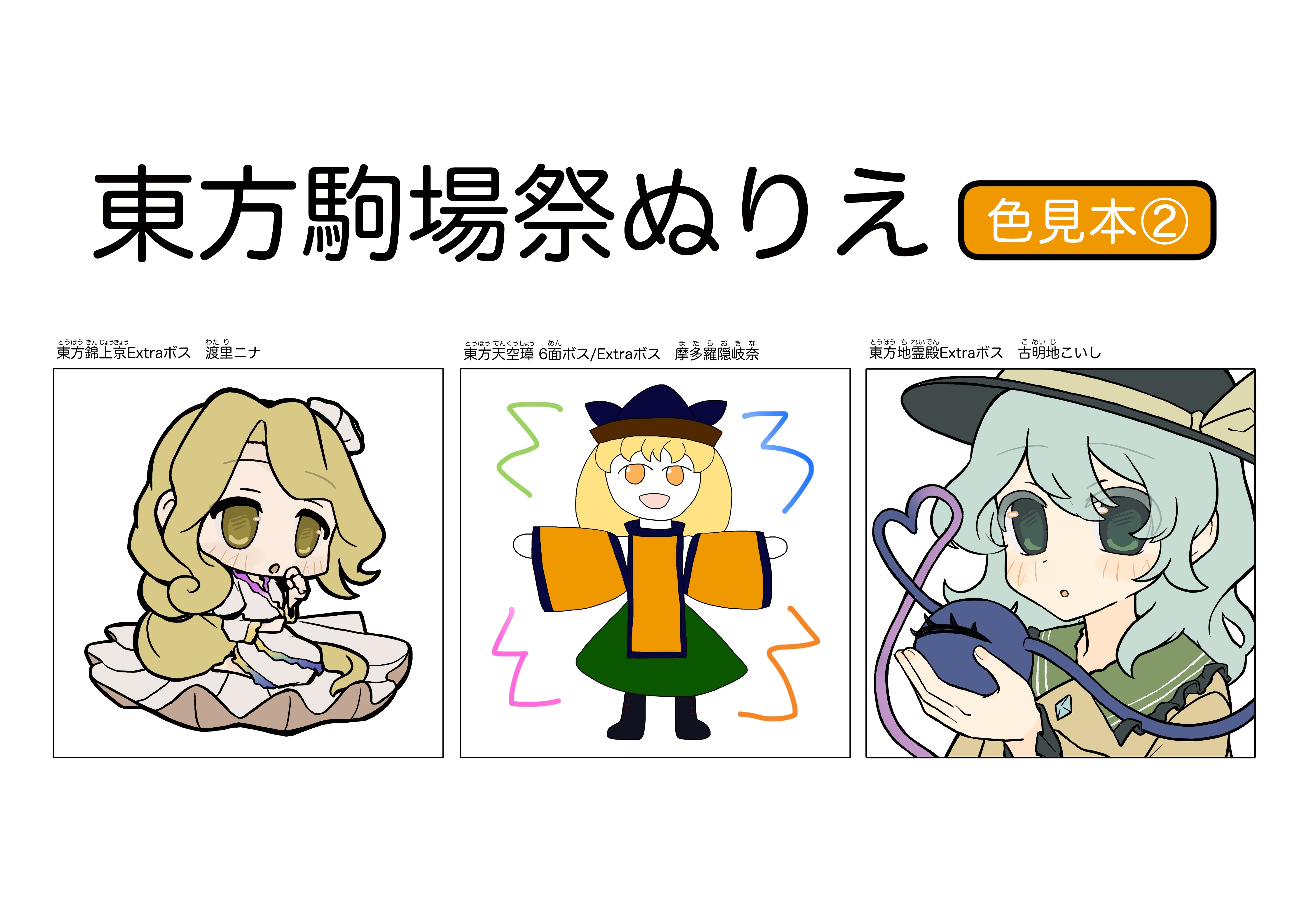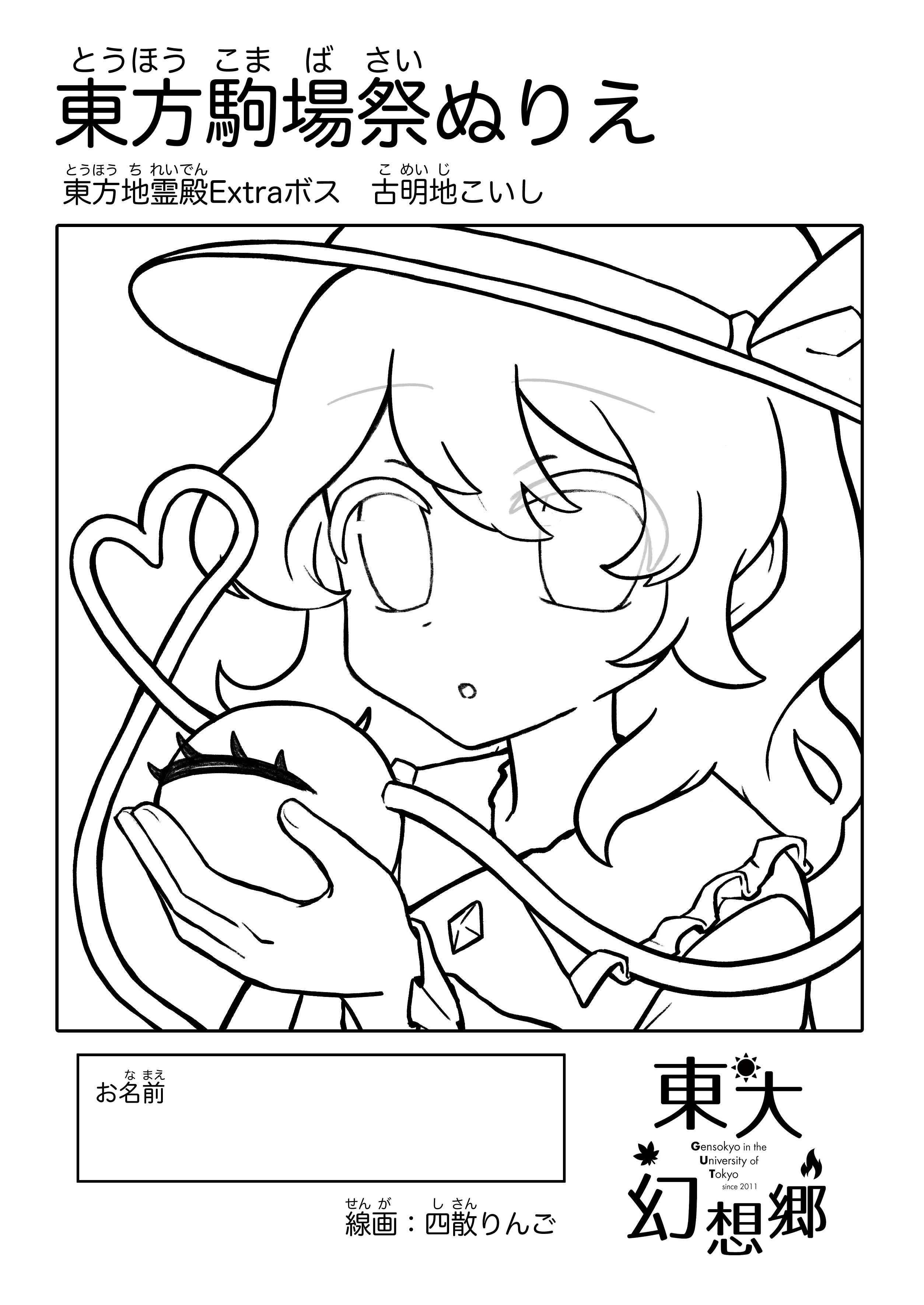 色変え・トリミングなどご自由に加工していただいて大丈夫ですので、気軽に塗ってください!必須ではないもののSNSに上げる場合は「#東方駒場祭塗り絵企画」というタグを付けてもらえると嬉しいです。