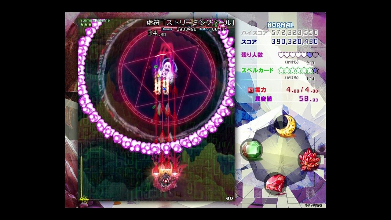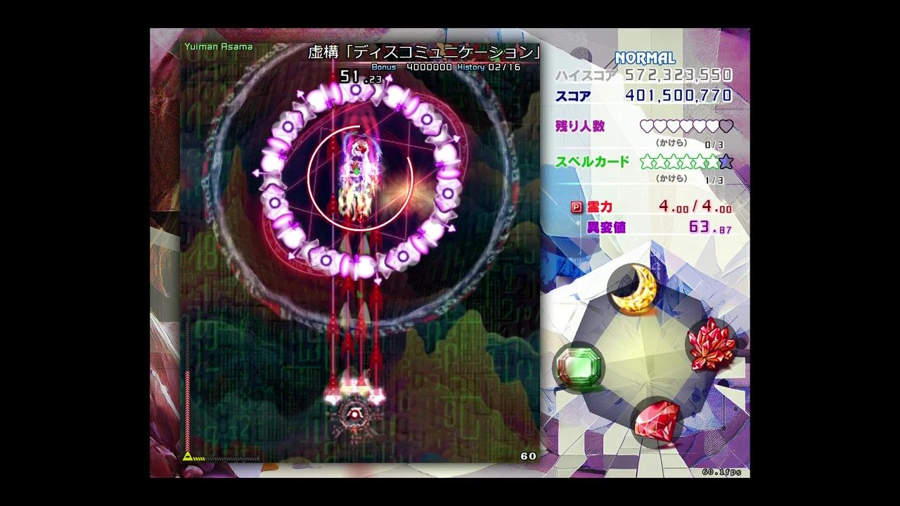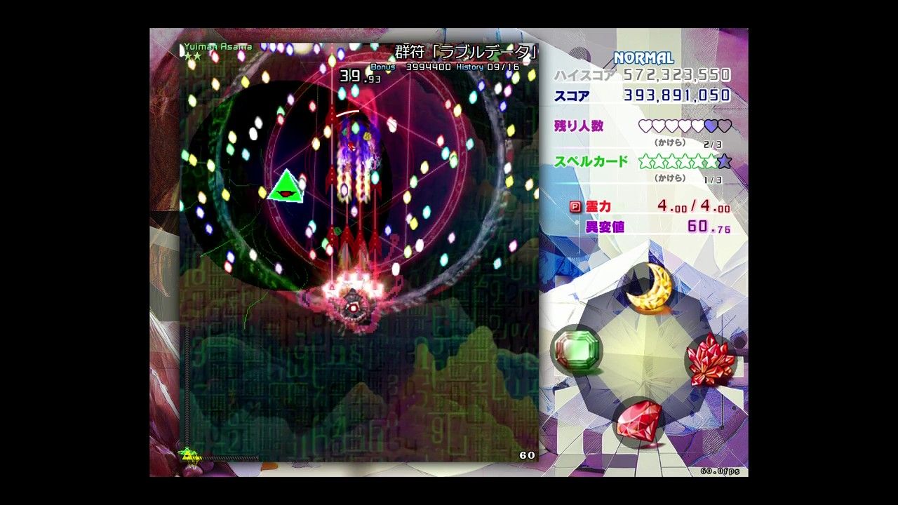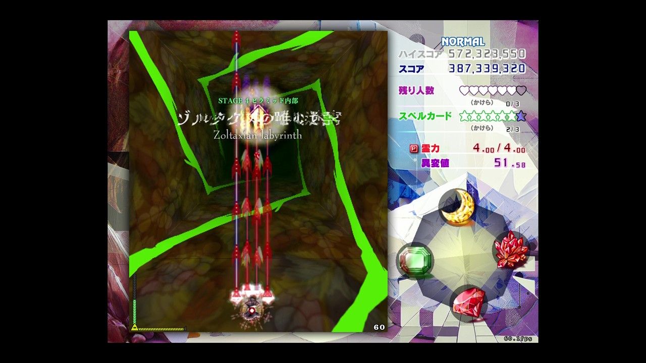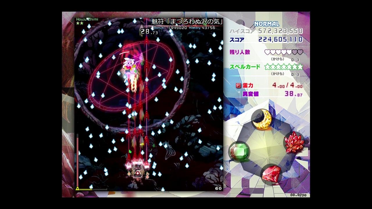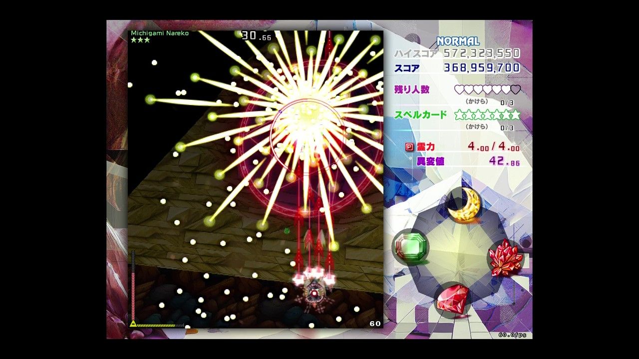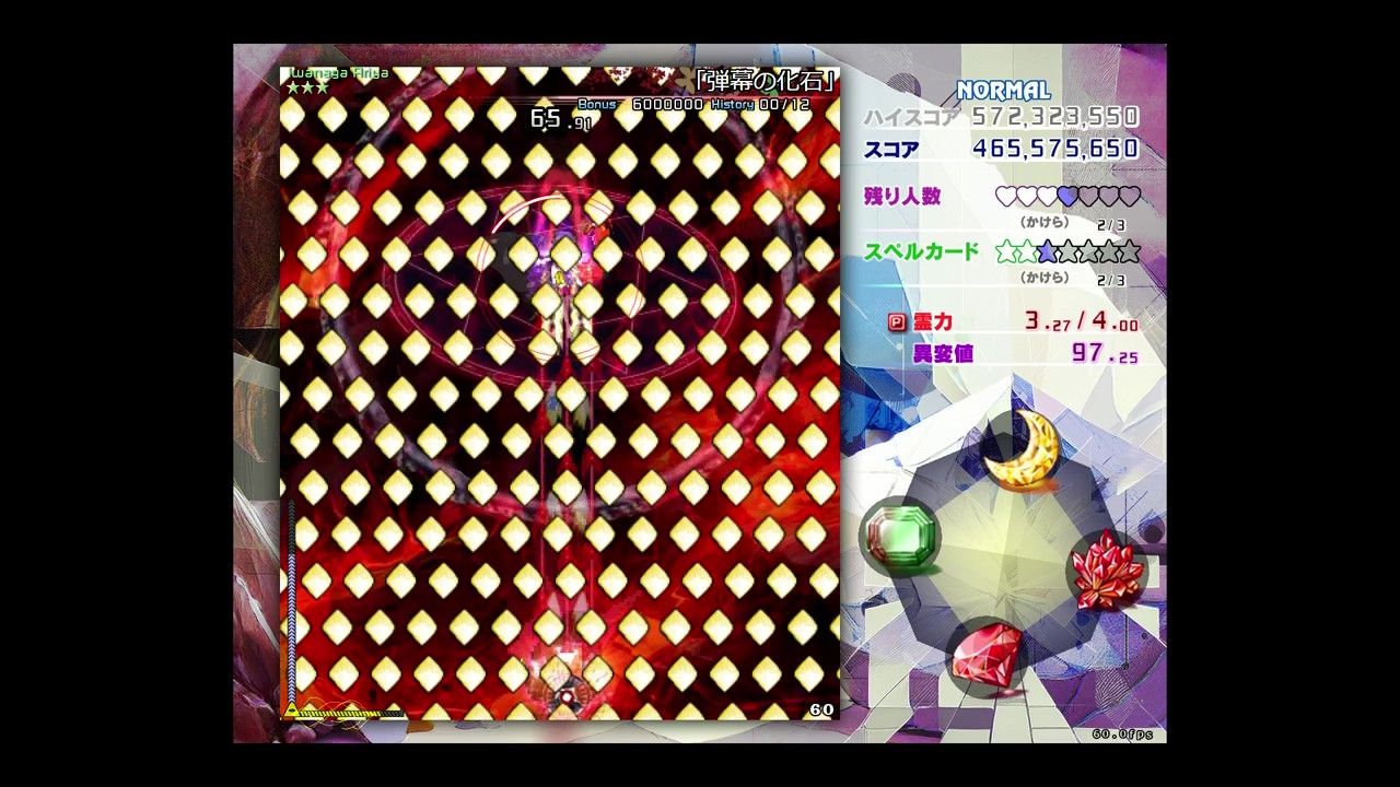 人によって得意・苦手が分かれると思います。弾が配置されたらグレイズを稼いで異変石の欠片を稼ぎ、避けられる人は避けて、無理な人はボムを撃ちましょう。
